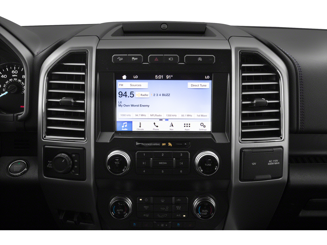 with XM/Sirus Satellite Radio you are no longer restricted by poor quality local radio stations while driving this 1/2 ton pickup. Anywhere on the planet, you will have hundreds of digital stations to choose from. The installed navigation system will keep you on the right path. Start it from inside with remote start. The leather seats in the Ford F-150 are a must for buyers looking for comfort, durability, and style. An off-road package is equipped on this 1/2 ton pickup. This model is pure luxury with a heated steering wheel. Bluetooth® technology is built into the vehicle, keeping your hands on the steering wheel and your focus on the road. This 2018 Ford F-150 has a clean CARFAX vehicle history report. It has automated speed control that adjusts to maintain a safe following distance, enhancing highway driving convenience. This model offers Apple CarPlay for seamless connectivity. See what's behind you with the back up camera on this unit.