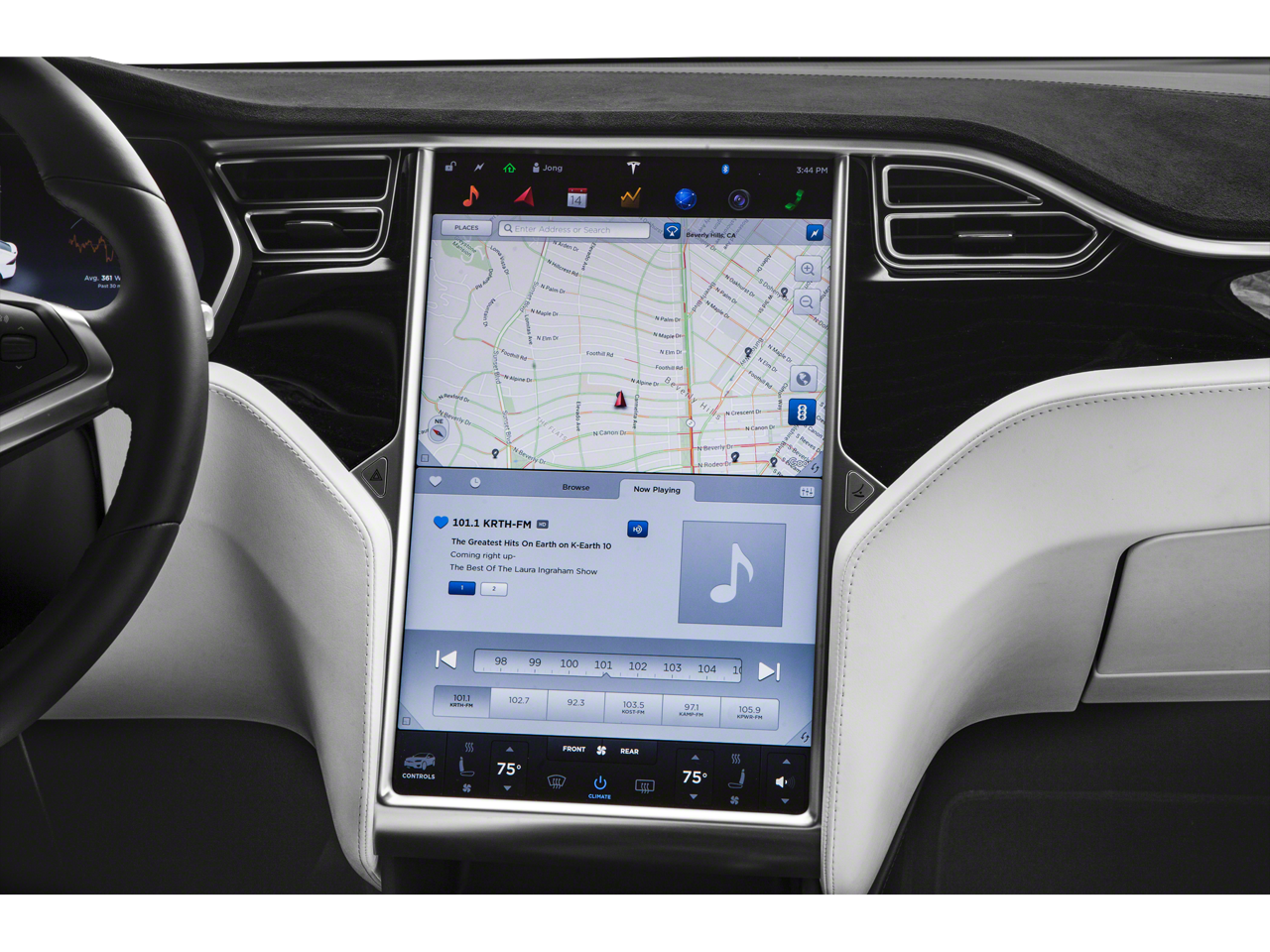 - Radio: FM w/Custom Audio System -inc: 17" touchscreen display, 17 speakers, XM satellite radio capability, Bluetooth® connectivity, on-demand and internet radio capability, 2 USB ports for media and power, onboard maps and navigation, WiFi and cellular internet capability and Bluetooth® hands-free calling and media streaming