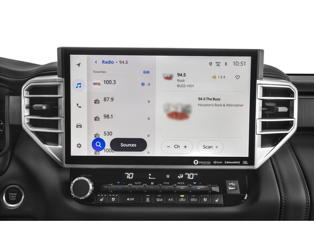 - Radio: AM/FM -inc: 14-inch touchscreen audio multimedia, Android Auto and Apple CarPlay compatible and SiriusXM w/3-month platinum plan trial subscription, See toyota.com/audio-multimedia for details, Connected services - Safety Connect w/up to 10-year trial, remote connect w/1-year trial, drive connect w/1-year trial, service connect w/up to 10-year trial, Wi-Fi connect w/up to 3 GB within 1-month trial, See toyota.com/connected-services for details