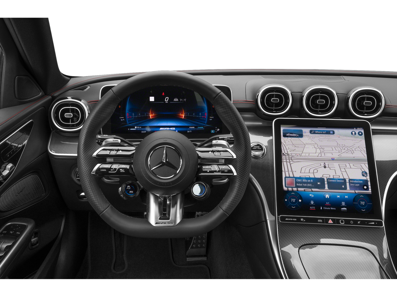 The Mercedes-Benz C-Class comes equipped with Android Auto for seamless smartphone integration on the road. The vehicle offers Apple CarPlay for seamless connectivity. Protect this Mercedes-Benz C-Class from unwanted accidents with a cutting edge backup camera system. It has an elegant black exterior finish. Maintaining a stable interior temperature in this vehicle is easy with the climate control system. This Mercedes-Benz C-Class features cruise control for long trips. This Mercedes-Benz C-Class has a 4 Cyl, 2.0L high output engine. The Mercedes-Benz C-Class features a hands-free Bluetooth® phone system. Quickly unlock this 2024 Mercedes-Benz C-Class with keyless entry. Help alleviate lower back pain with the driver seat lumbar support in the Mercedes-Benz C-Class. The installed navigation system will keep you on the right path. Never get into a cold vehicle again with the remote start feature on this Mercedes-Benz C-Class. This small car is easy to park.