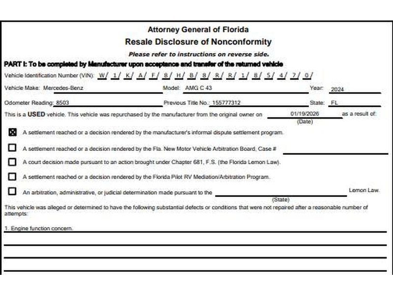 Experience thrilling performance and sophisticated style with this 2024 Mercedes-Benz Mercedes-Benz C-Class AMG C43, now available in Birmingham, AL. This AWD sport sedan pairs a punchy 4-cylinder 2.0L gasoline engine with AMG-enhanced tuning for exhilarating responsiveness and confident handling—perfect for drivers who demand dynamic power and refined comfort. With only 8,525 miles, this C43 delivers the advantages of low mileage and modern technology at the best price in the market.