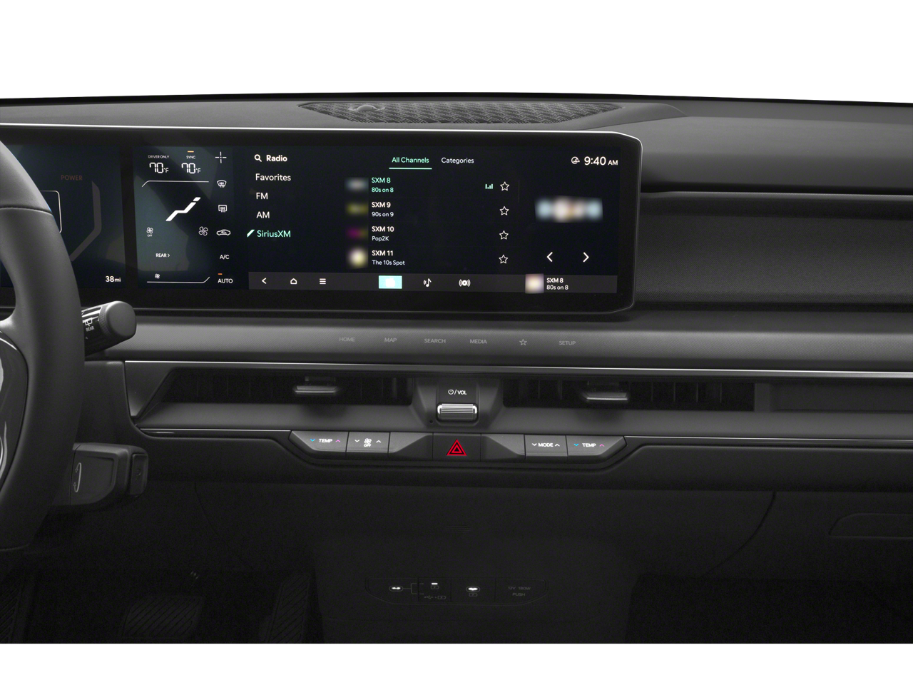 - Radio: AM/FM/HD Radio/SiriusXM -inc: 12.3" display, navigation, over-the-air updates (OTA), passenger talk, quiet mode, Android Auto, Apple CarPlay, voice recognition, Bluetooth® w/multi-Bluetooth function, Kia Connect telematics, wi-fi hotspot, 8 speakers, amplifier and USB connectivity
